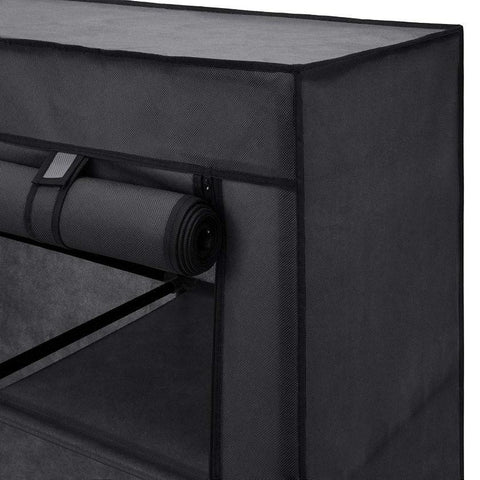 Time and space are in your control with this portable closet wardrobe. Designed to save you time, this 9-shelf wardrobe portable closet helps make organizing and finding your things fast and easy, with 9 storage shelves and 2 moveable hanging rods for larger outfits. Control space in your home by storing away coats, shoes, bags, and more! You can even hide it from the eyes of visitors by simply unfolding the roller shutter. Clean up clutter with some extra closet space.