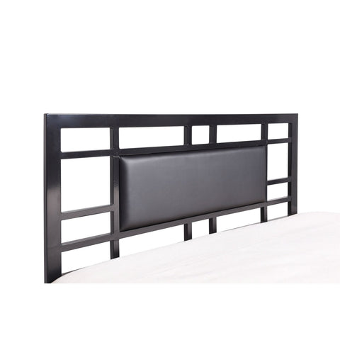 • Full size Modern Classic Metal Platform Bed Frame with Black Upholstered Headboard
