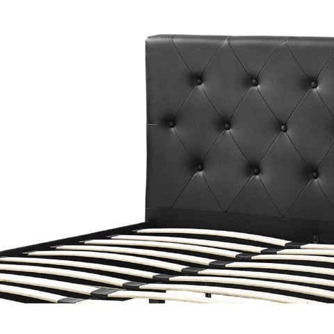 - Queen size Black Faux Leather Upholstered Platform Bed with Button Tufted Headboard