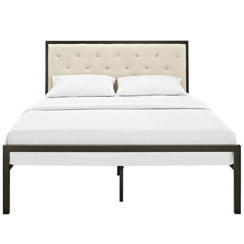 - Queen size Modern Metal Platform Bed with Beige Button Tufted Headboard Upholstered
