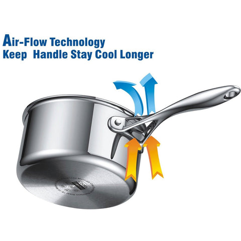 - Solid stainless-steel riveted handles stay cooler with air-flow technology