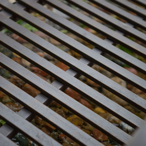 Like a small portal into a more romantic era, this 4-Foot Steel Frame Metal Garden Bridge in Rustic Weathered Black Finish instantly adds magic to your garden space. Use it as a traditional bridge to cross a small stream or simply to add visual interest, either way this bridge is something special. It's beautifully designed of sturdy steel, lavishly decorated with vines and leaves, and features a durable finish. The plank style walk enhances the look and provides secure footing in any weather.
