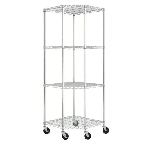 Heavy Duty 4-Tier Corner Storage Rack Shelving Unit with Casters Minimum Shelf Height - Top to Bottom 1'' Maximum Shelf Height - Top to Bottom 68'' Heavy Duty 4-Tier Corner Storage Rack Shelving Unit With Casters