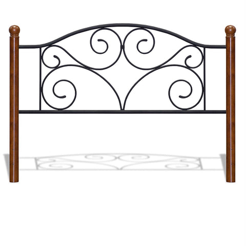 - Matte Black powder coat steel finish complement the dark Walnut wooden bedposts