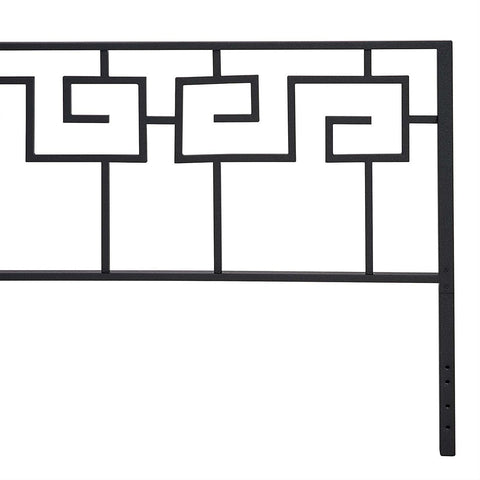 Bring your bedroom decor to life with this King size Modern Meander Greek Spiral Headboard in Black Metal Finish! This metal deluxe headboard is finished in an elegant black color and is the perfect touch to any modern sleeping space. Create a chic, airy bedroom look with this modern headboard. Bask in both its feel and Greek Spiral patterns, which add a wonderful contrast to your bedspread and a creative decoration to your whole bedroom. Perfect for the master bedroom, the guestroom, and for people with impeccable style. The headboard's steel frame ensures durability for the head of your bed.