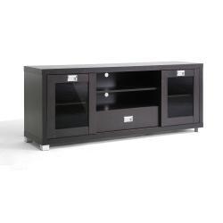 It is all about a place for everything and everything in its place from top to bottom with this Modern Glass Door TV Stand in Dark Brown. With two sliding doors, a center drawer and more, this entertainment center will hold all your needed electronic components.