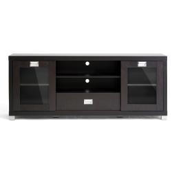 - Modern Glass Door TV Stand in Dark Brown