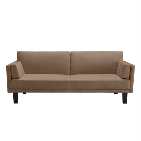 - Modern Tan Microfiber Upholstered Futon Style Sleeper Sofa Bed