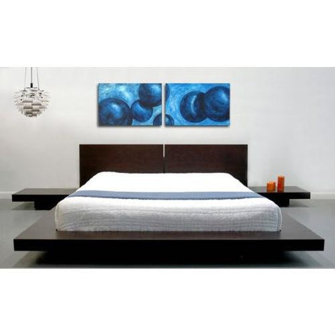 • Bed is a low profile Japanese designs platform bed with sleek and clean lines and two nightstands on both sides constructed from strong MDF with Espresso color finish