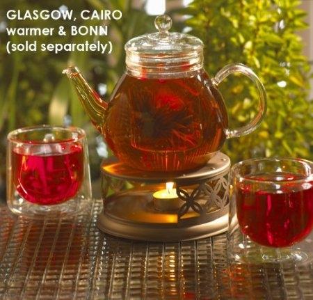 GLASGOW Teapot and Kettle: With classic and subtle European design notes, the high quality contemporary look of this Stovetop Safe Glass Teapot Water Boiler Kettle with Infuser is an elegant part of any table setting. Its 1 liter (approx 34 fl oz) Capacity is great for 4-5 tea cups at a time. Perfect for an after dinner tea setting, this steeper tea pot is made of medical grade GROSCHE Borosilicate glass that is heat resistant, lightweight, and strong. Perfect for use with a GROSCHE SAHARA Warmer (not included) to keep your tea warm for hours. With the GLASGOW, you can just add more water and allow your tea leaves to re-steep giving you many more great cups of tea to enjoy. You can also use it without the steeper for flowering teas by removing the strainer. It is top rack dishwasher and microwave safe, and stovetop safe as well for gas/electric (not induction) stoves on low to medium heat. This high quality GROSCHE teapot is guaranteed against ever becoming cloudy even after many, many years of use. Since it is safe for stovetop use you can boil water in the GLASGOW TeaKettle, and add your favorite loose tea, flowering teas, or tea bags to the teapot to prepare your teas jus the way you like them. The 1 Litre (33.8 Fl oz.) size makes this a great size for having tea for 2 to 5 people. You can always add water to an emptying kettle to re-steep your teas. It's a 3 piece set, with the teapot, strainer / Infuser included, and the teapot lid. It goes great with a SAHARA teapot Warmer (Sold separately). Brand new, it comes in the original GROSCHE packaging box.