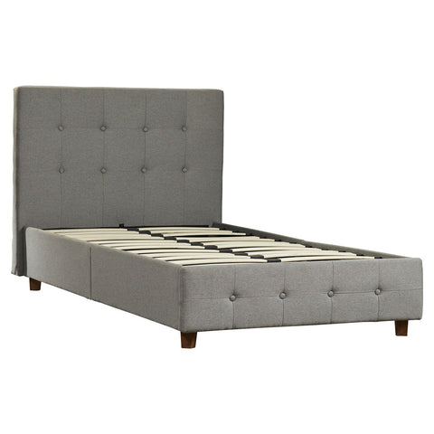 - Twin size Grey Upholstered Platform Bed Frame with Button-Tufted Headboard