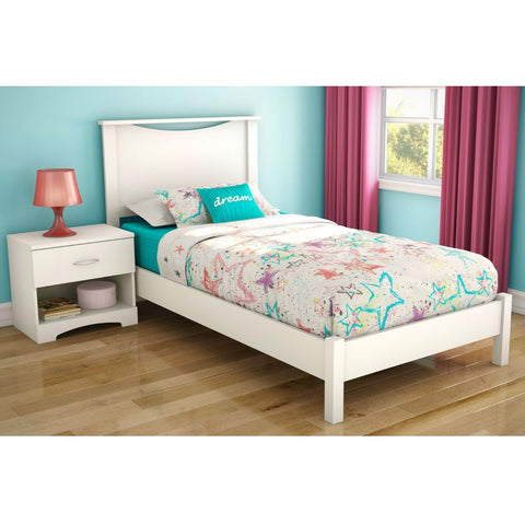 - Twin size Simple Platform Bed Frame in White Wood Finish