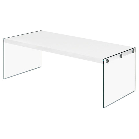 - White Modern Rectangular Coffee Table with Tempered Glass Legs